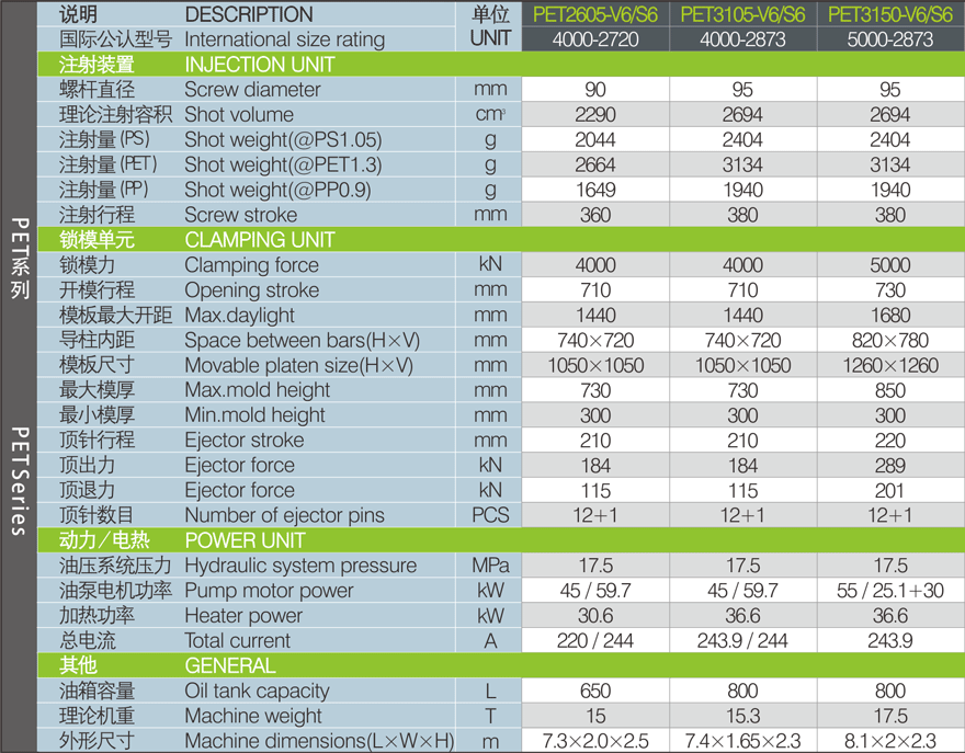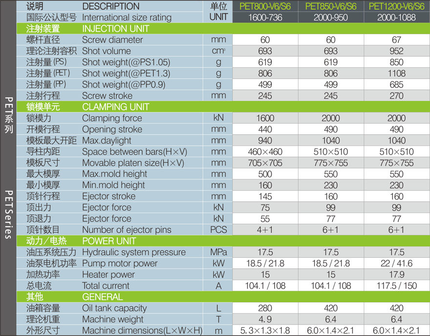 提供PET瓶坯全方位完善而成熟的解決方案,注射量從800-4500g的50多款不同規(guī)格型號PET瓶坯專用注塑機。