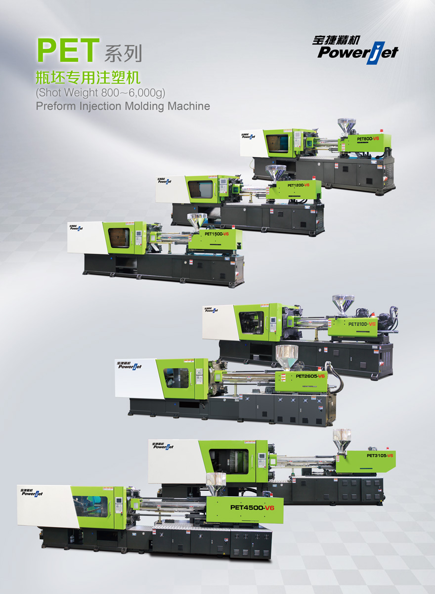 寶捷公司自2000年成立以來,始終專注于節(jié)能、高效、精密、穩(wěn)定為核心的注塑設備,也是業(yè)內較早涉足高速PET瓶坯領域的專用機器制造商。經過多年的努力,我司在全國PET專用注塑機領域享有卓越地位,占據著領先的市場份額。目前已擁有PET專用機型注射量從800g-6,000g的完備產品線,從主機更多選擇,到模具、機械手以及干燥系統(tǒng)等輔助設備的完善配套,提供給不同產量需求的客戶貼心的服務,為全方位滿足PET瓶坯注塑這一專業(yè)細分市場而提供成熟的解決方案。