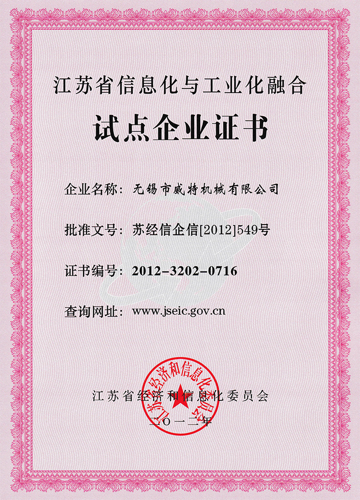 兩化融合試點(diǎn)企業(yè)證書(shū)