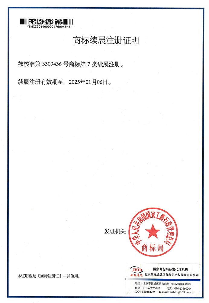 商標(biāo)續(xù)展注冊(cè)證明
