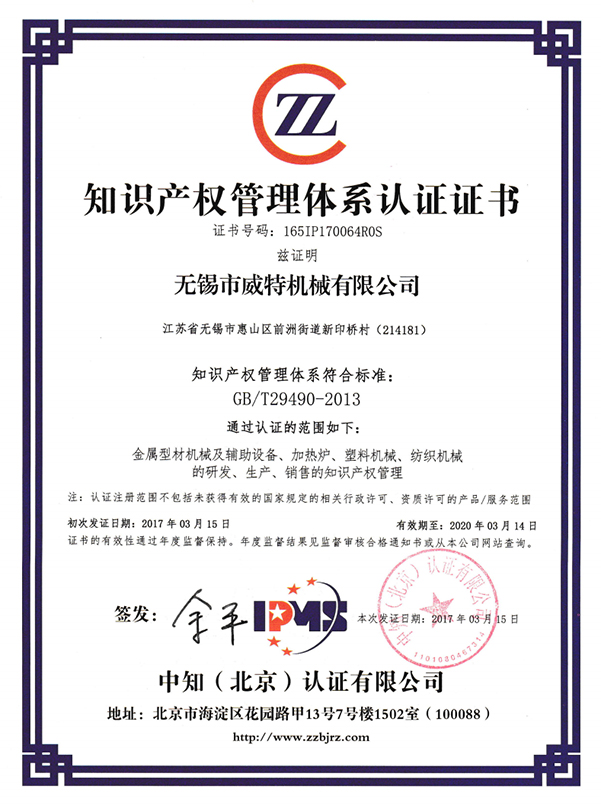 知識(shí)產(chǎn)權(quán)管理體系認(rèn)證證書(shū)