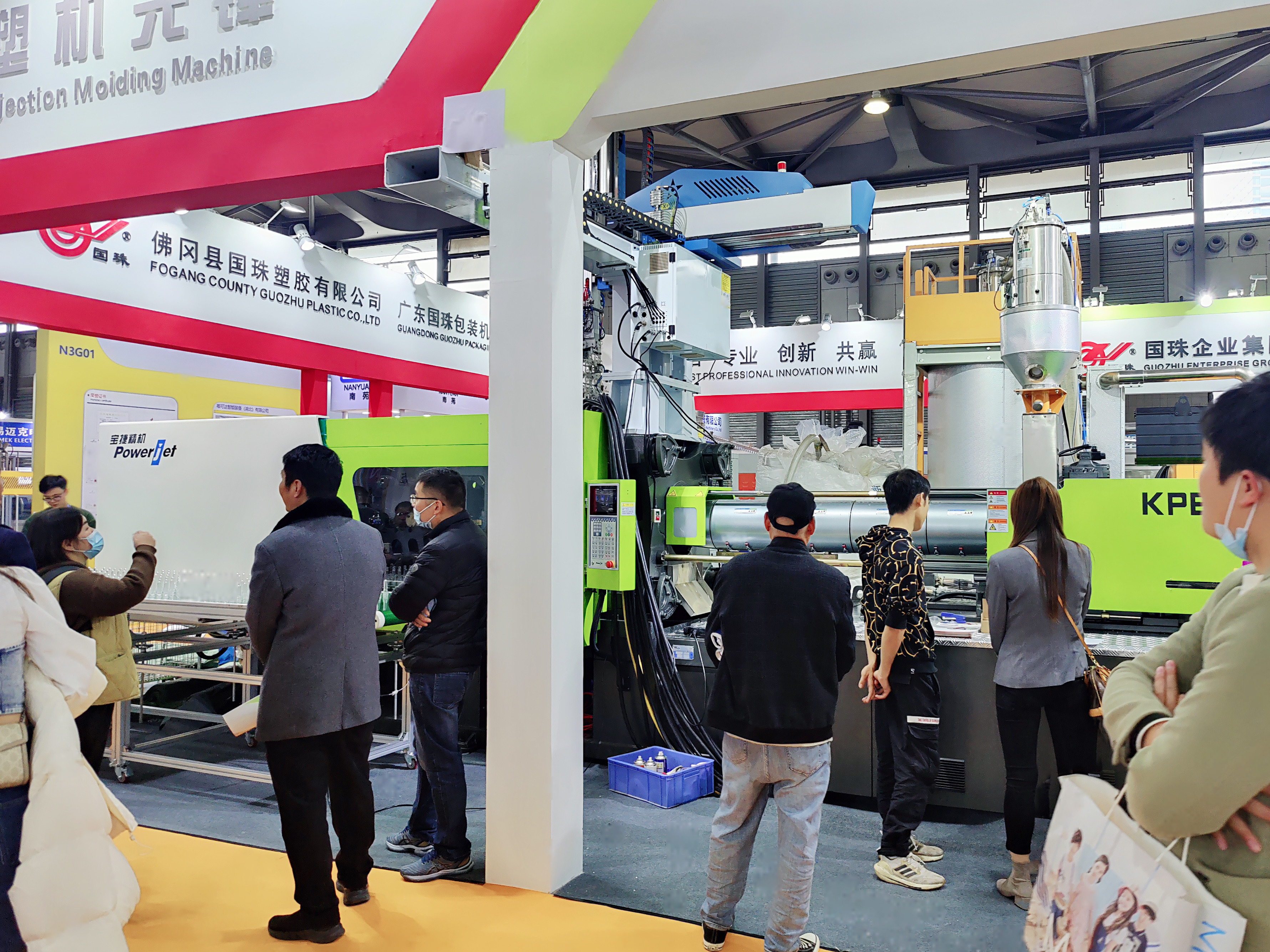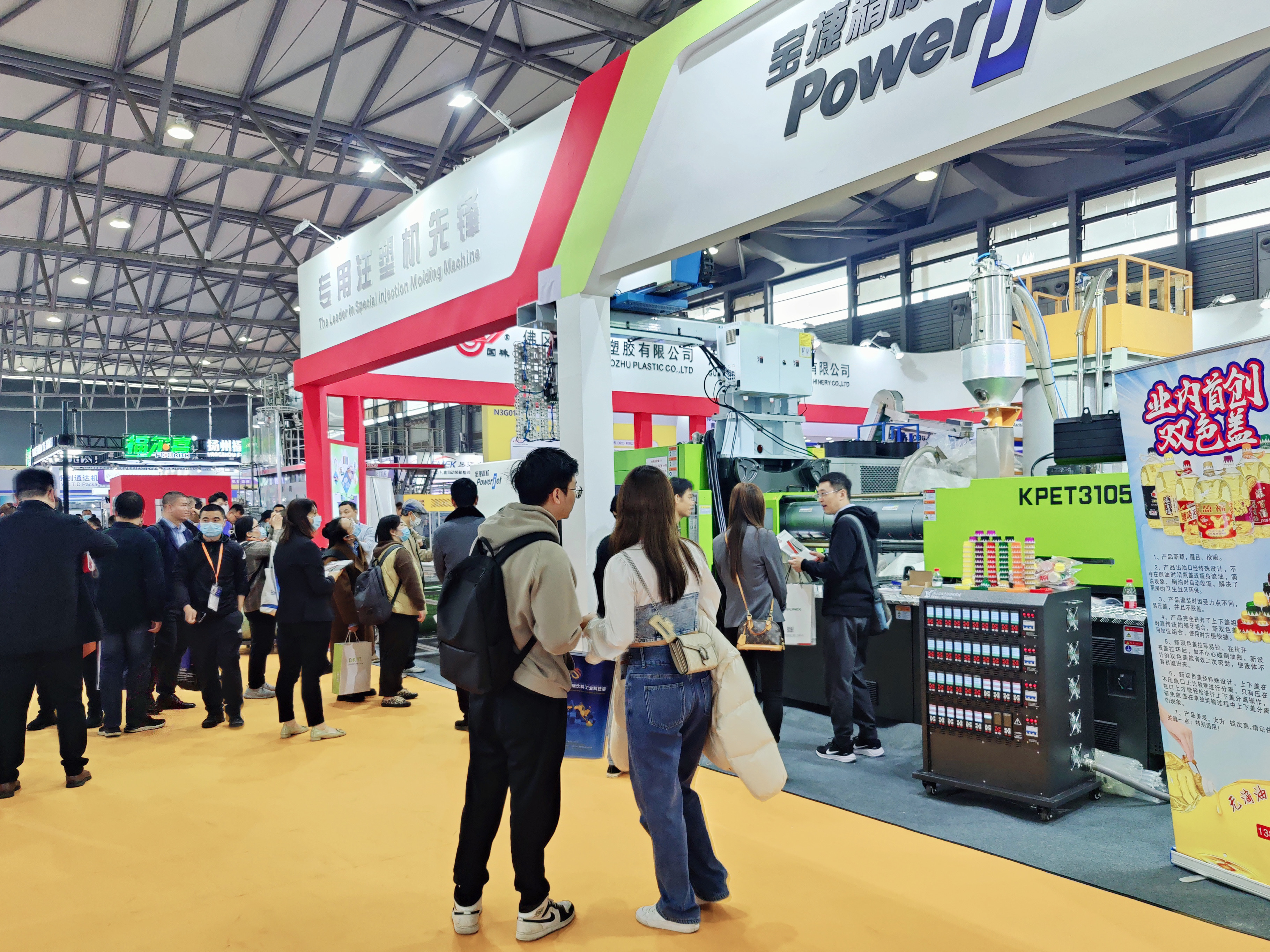 本次展會(huì),寶捷聯(lián)動(dòng)廣東國(guó)珠模具科技有限公司共同參展,展臺(tái)位于3F01。寶捷亮相的是小高速瓶坯專用注塑機(jī)——KPET3105L-E6,現(xiàn)場(chǎng)動(dòng)態(tài)演示打制水瓶坯,吸引眾多專業(yè)觀眾駐足觀看和前往洽談區(qū)作進(jìn)一步咨詢。