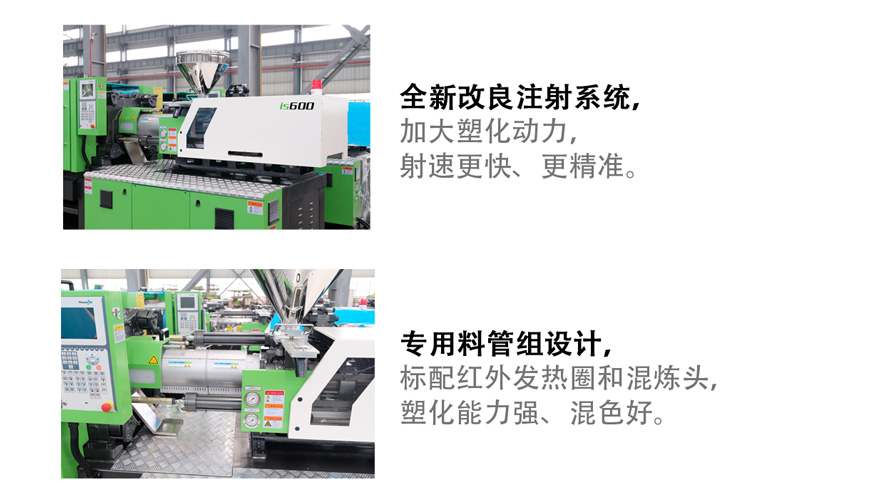 1.射臺機構:專業(yè)的塑化系統(tǒng)讓產品更美觀,生產周期比行業(yè)品牌機臺縮短3-4秒。