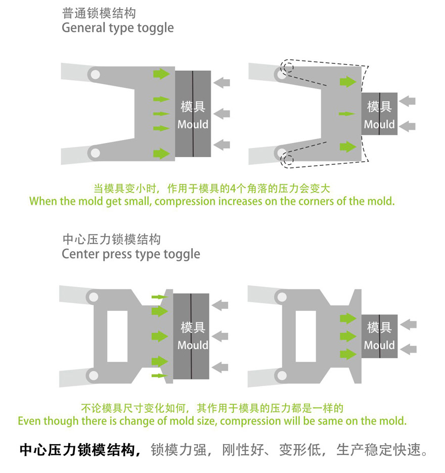 ·細長筆桿同心度對鎖模結構剛性和穩(wěn)定性要求高。