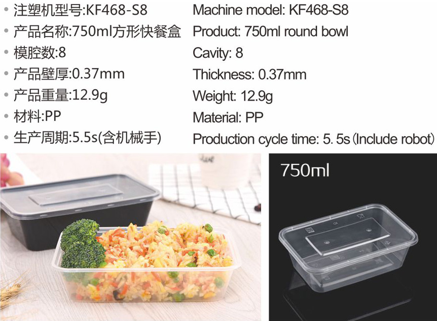 KF系列專用注塑機是專用于高檔食品等薄壁容器的生產(chǎn),例如一次性環(huán)保高檔PP料雪糕杯、酸奶杯、奶茶杯、飯盒、刀、叉、勺等,是寶捷公司近年來技術領先的新秀型細分市場專用注塑機。
