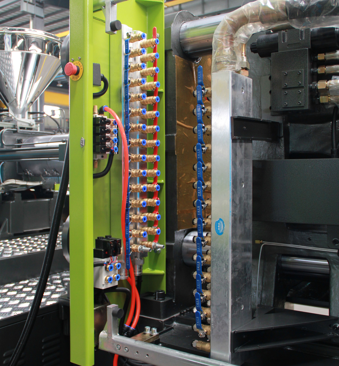 ②分水器和吹氣合理分配在頭板和二板,讓客戶生產(chǎn)時更方便機臺更美觀!